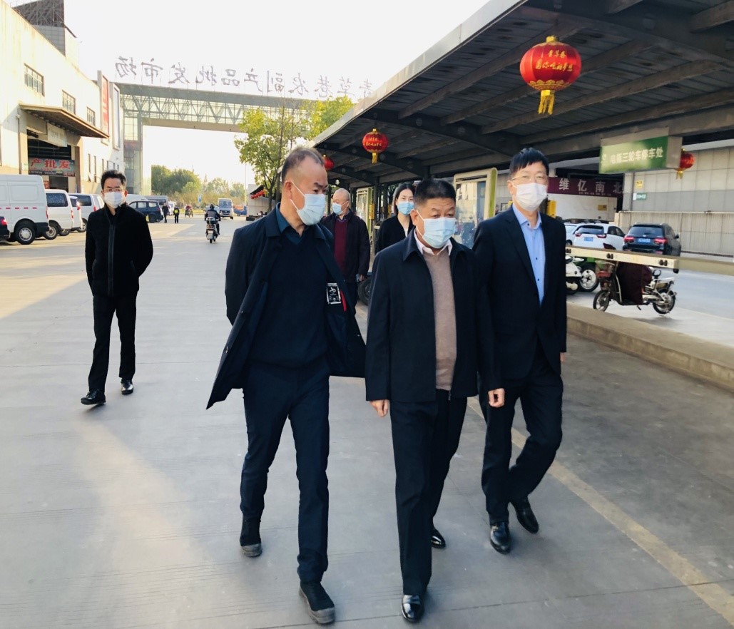 11月9日下午,苏州供销合作总社党组书记、理事会主任王向东一行来市场调研,市供销合作总社党委书记、理事会主任江建胜,党委委员、理事会副主任李晶,市场党支部书记、总经理戴德荣陪同。