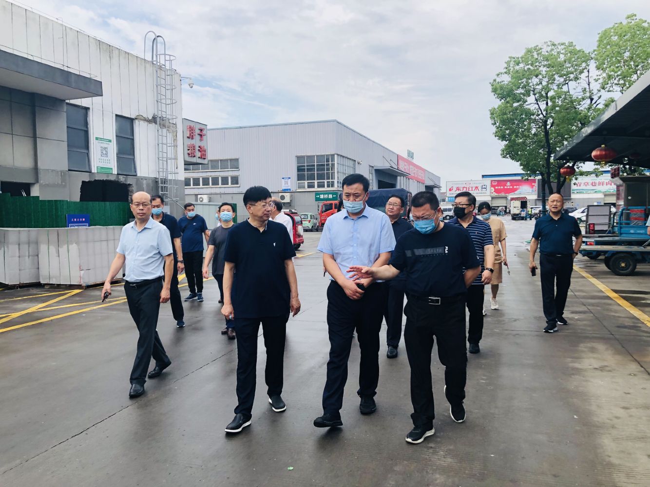 邹忠生一行实地考察了市场水产、蔬菜、副食等交易区,对市场建设的运行情况进行了交流。