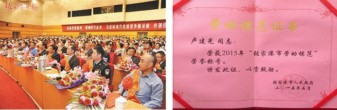 4月30日,全市庆祝“五一”国际劳动节暨劳模先进表彰大会隆重举行,市委副书记、政法委书记王亚方主持会议。市委副书记、市长朱立凡宣读《关于表彰2015年张家港市劳动模范的决定》,大会为获得全国劳动模范,江苏省五一劳动奖、十佳文明职工、工人先锋号的先进集体和先进个人,苏州市劳动模范,张家港市劳动模范等荣誉的代表进行了颁奖。青草巷市场卢建光同志喜获2015年“张家港市劳动模范”称号。会上,市委书记姚林荣就如何与时俱进弘扬劳模精神提出了四点要求:一是要有更加坚定的理想信念;二是要有更加突出的敬业精神;三是要有更加饱满的创新激情;四是要有更加强烈的大局意识。要求全市广大干部职工要以劳动模范为标杆,在各自岗位上奋勇争先、开拓创新,为港城现代化建设添砖加瓦,争作贡献。