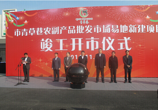 11月19日上午,青草巷农副产品批发市场在新址(锦丰镇洪桥村)举行竣工开市仪式。市委常委黄尧、市政府副市长丁学东、市委办副主任黄晓伟、政府办副主任汤卫华、锦丰镇镇长马春青及市供销合作总社书记、主任唐雷刚出席开市仪式。