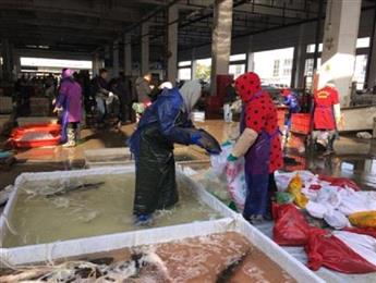 图3为市场水产区交易场景 图4为市场蔬菜区交易场景
